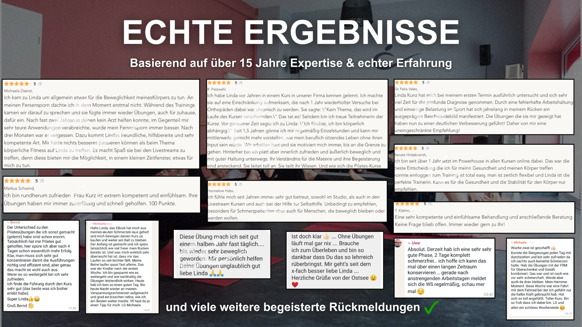 Zusätzlich zu ihrer umfangreichen Ausbildung führt Linda ihr eigenes Pilates- & Bewegungstherapie-Studio, in dem sie täglich mit Menschen arbeitet, die unter Schmerzen, Blockaden oder Bewegungseinschränkungen leiden.